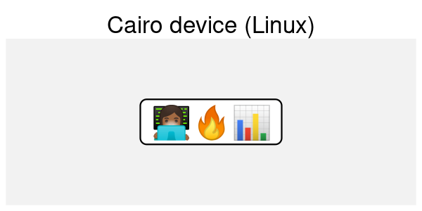 The Cairo device on Linux handles this task well, as we have noted above. How come this works, but only on one OS? Cairo is built in to most Linux distributions and is designed to work with Pango, the library that linux uses to layout text. R’s Cairo graphics device bundles Cairo on all platforms, but doesn’t include Pango, due to the challenges of building it on other operating systems.