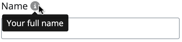 Tooltips can be combined with help icons, which are available in the faicons package. You can add tooltip help icons in input labels by passing a list to the label argument of input_*() functions: