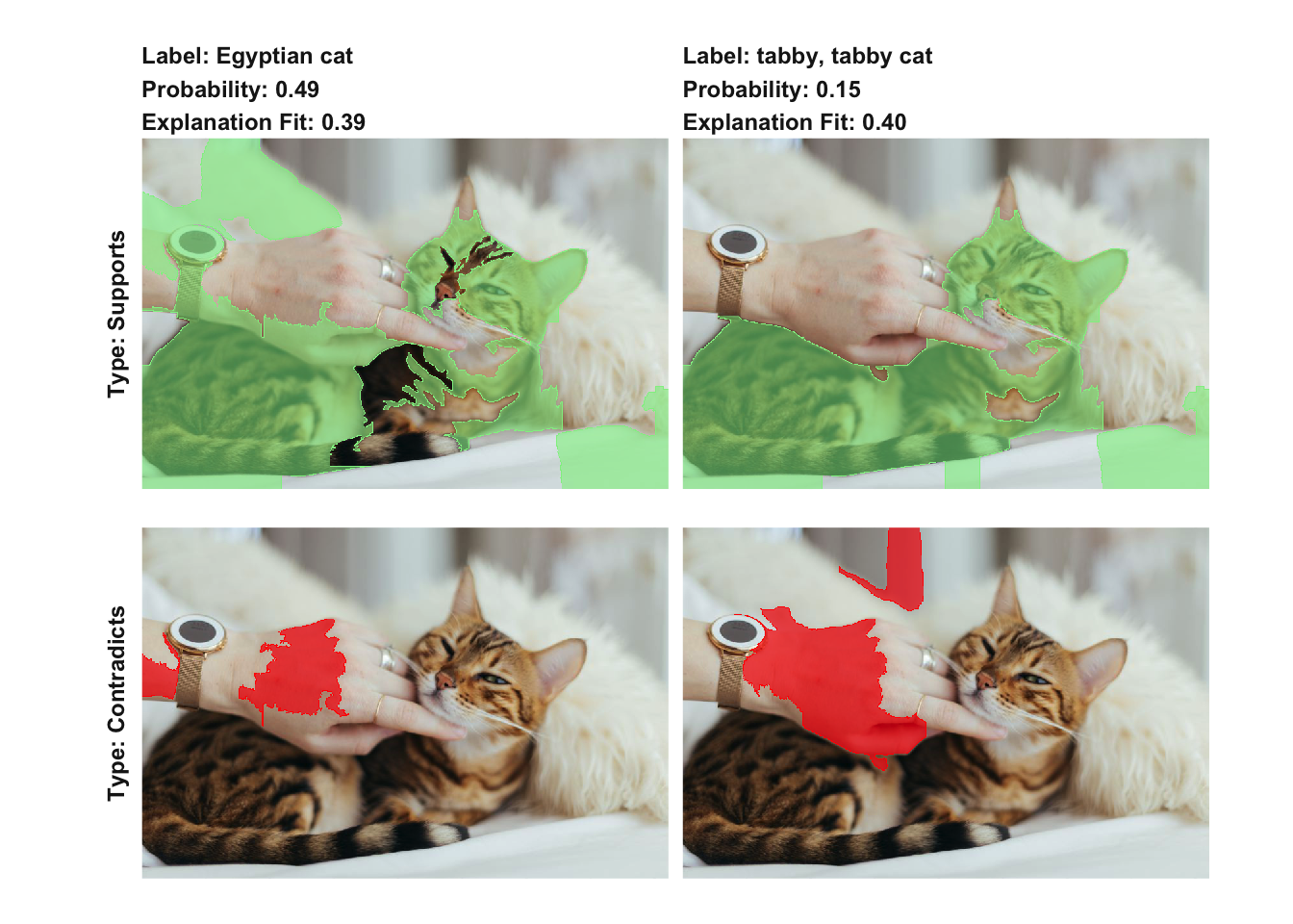 While not as common with image explanations it is also possible to look at the areas of an image that contradicts the class:
