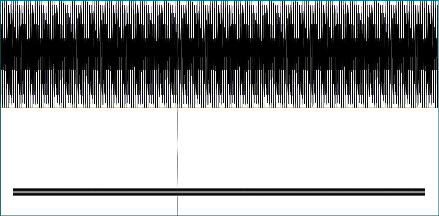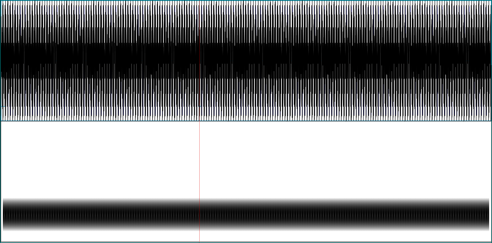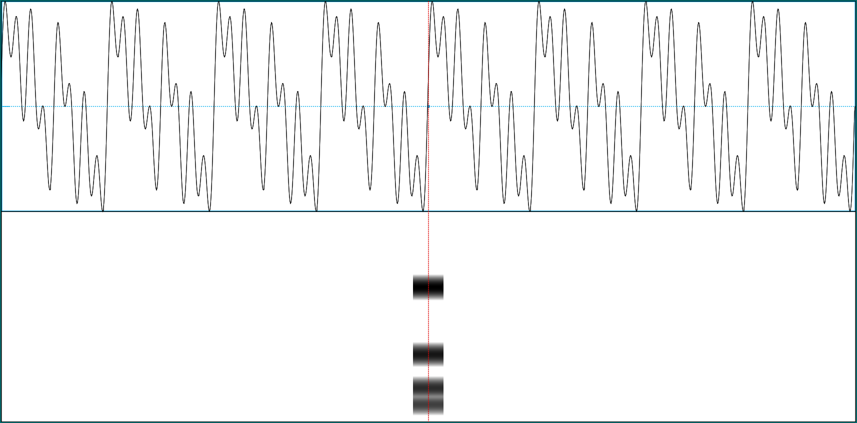 Here we see a sound wave (top) and its frequency representation (bottom).