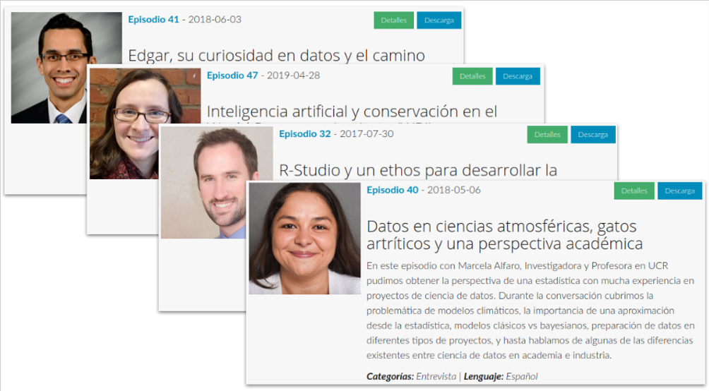 When we started with the first Data Latam Podcast in May 2016 we thought that it would be a great idea to have a source of information about data science in Spanish. Our goal was to make available not only a source of information, but also of inspiration. We believe that having role models is important in a field where so many of us are self-taught, and all of us need to learn continuously to stay abreast of advances in each of our fields.