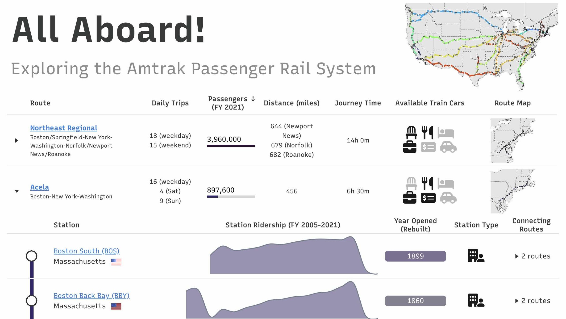 Our 2022 Annual Posit Table Contest received the most incredible entry—an interactive table of Amtrak routes. The table uses the library reactable in R (which we recently ported to Python !).