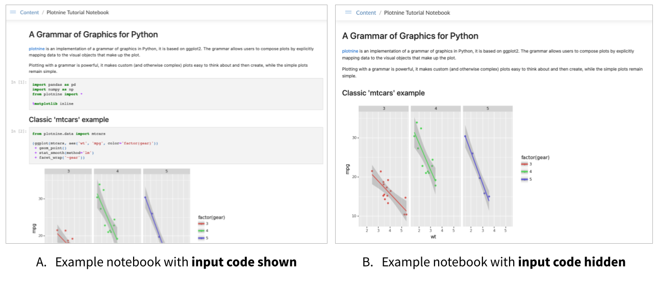 Hiding input code cells can be useful when preparing notebooks for audiences where a “cleaner” or less code-heavy presentation would be more appreciated.