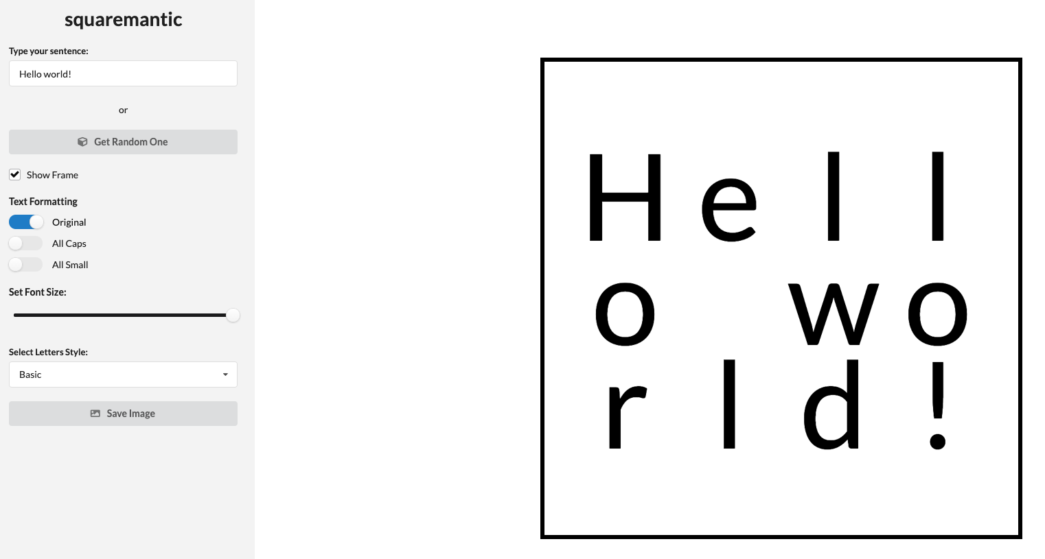 This application developed by Jakub Chojna creates a visually appealing square layout from text input. The user can update the formatting of the letters via the sidebar input and eventually download the final result as a PDF file. We can definitely see a graphic design team using this application to generate ideas and proof of concepts. Now if only it helped to create hex-shaped images of R package logos…