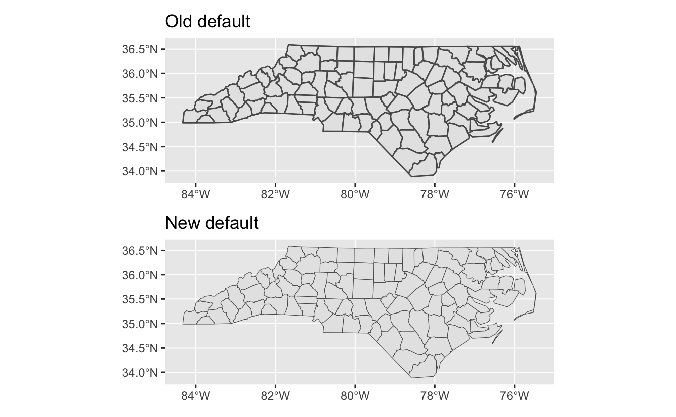 We have made a few other internal changes when it comes to line widths. The biggest of these are perhaps a new default for polygon line width in geom_sf()